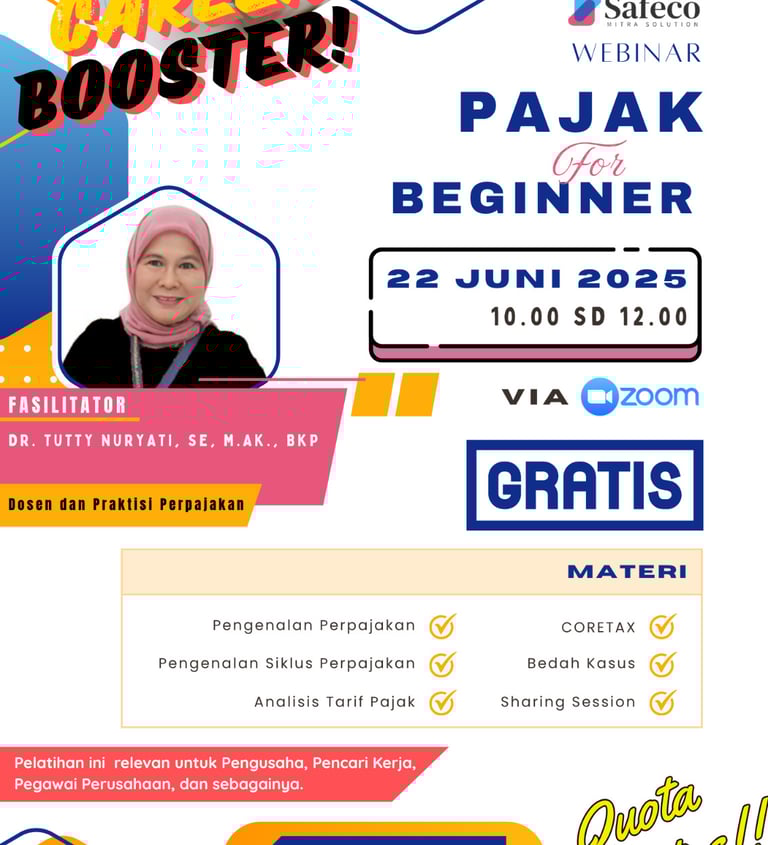 Saya sangat puas dengan pelatihan perpajakan di Safeco, mentor sangat berpengalaman dan membantu sekali.
